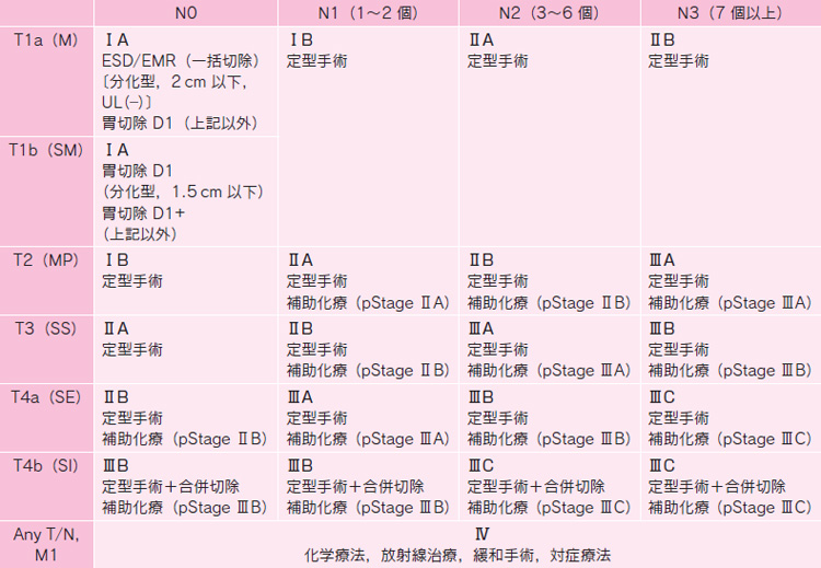 この表に示す適応は,病理学的進行度の治療成績データをもとに作成されたものであり,治療前または手術中の所見に基づくものではない。臨床所見に応じた治療法の適応は,ⅡA-1のアルゴリズムを参照されたい。